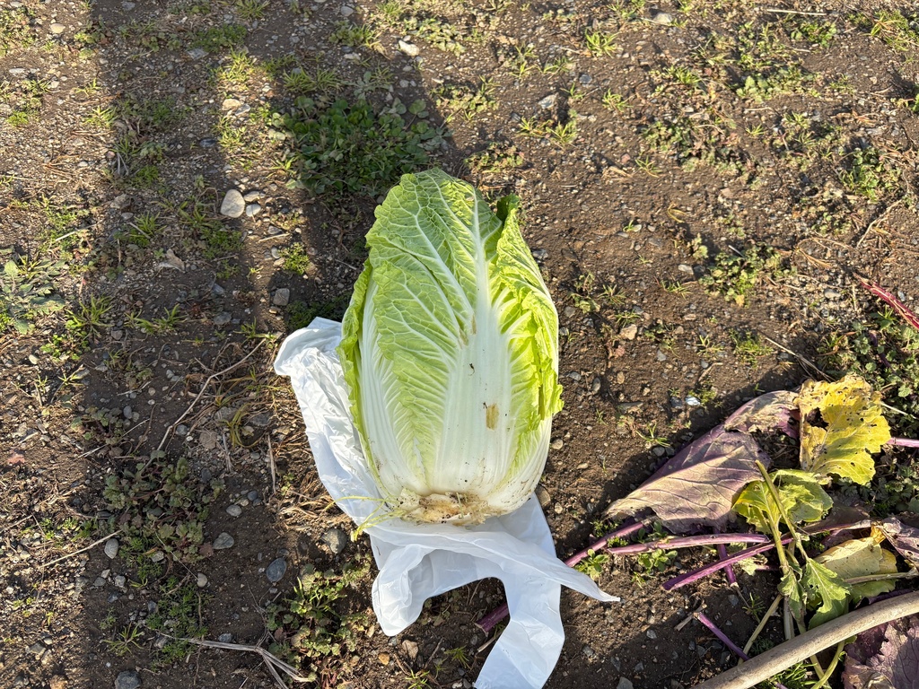 カブは肌がつるつるで、ハクサイはしっかり結球していて、スーパーで見るようなサイズのものもありました。