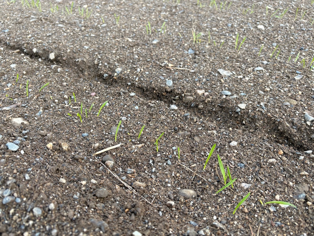 こちらは播種後約1ヶ月経過した傾斜畑の写真です。