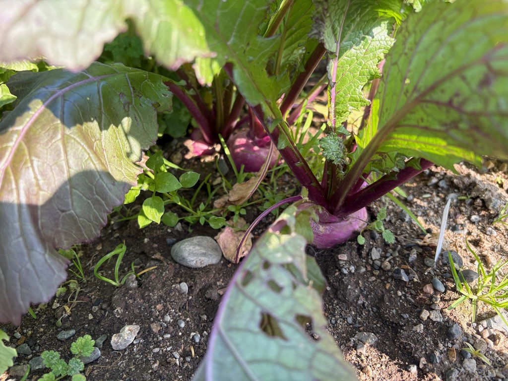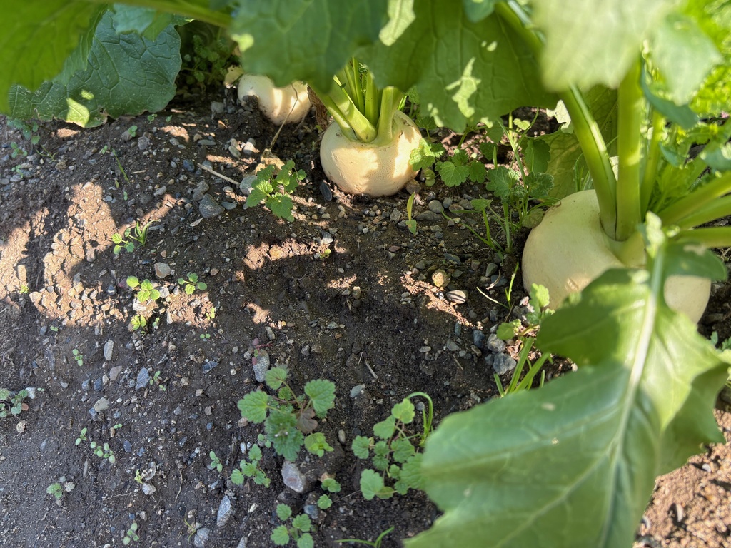 1ヶ月半前に播種したカブの一部を収穫しました。