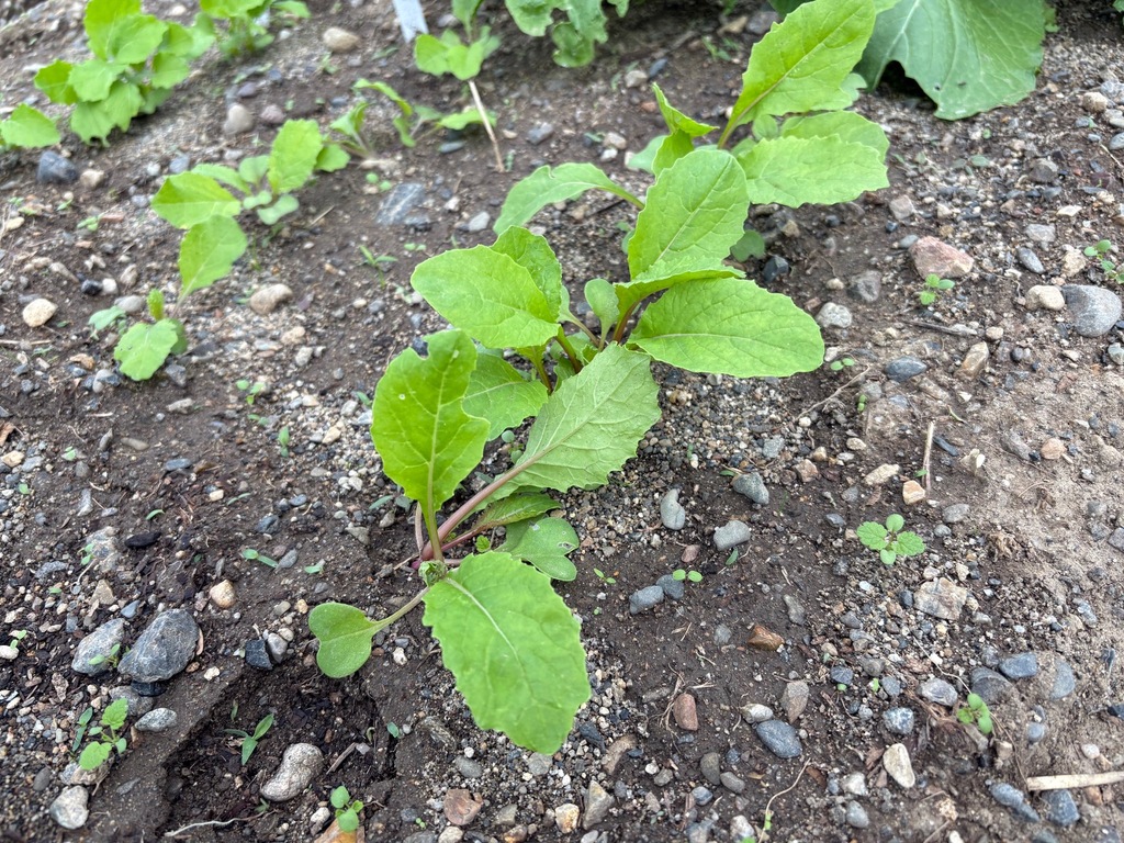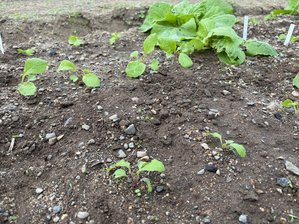 2週間前に播種したカブの間引きと除草を行いました。