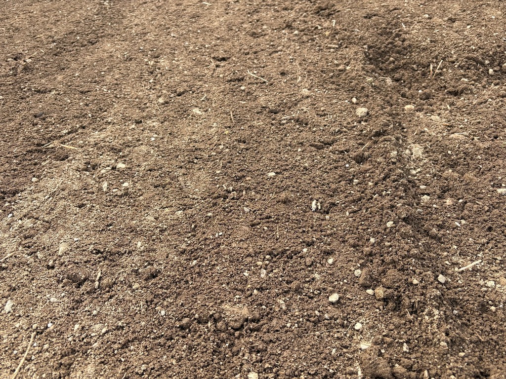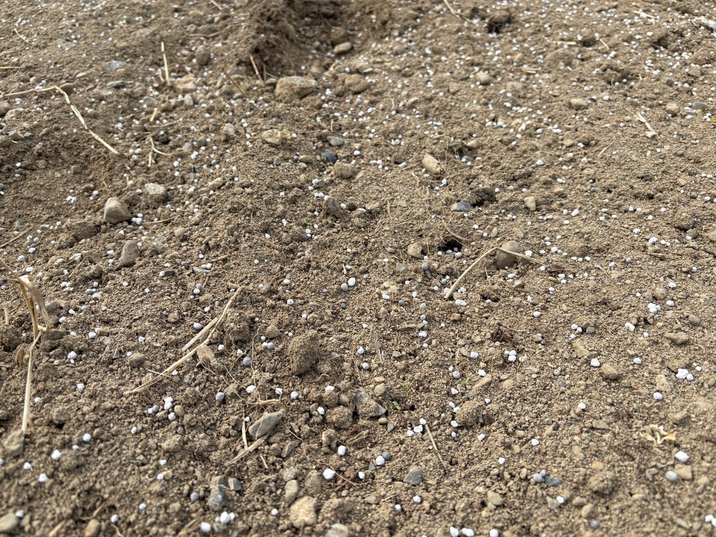 近くで見ると、肥料が土の中に混ぜ込まれているのが分かります。