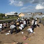 4月に種から育てたトウモロコシが収穫を迎えました。 収穫の様子です。 このグループでは、防虫網や手作りの虫よけ資材を用いて、トウモロコシに侵入するアワノメイガの観察を行い、対象区との比較を行っていました。 また、防鳥網を […]